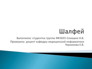 Документ представляет собой описание растения шалфей лекарственный, включая его ботанические характеристики, распространение и применение в медицине. Растение используется для лечения различных заболеваний, таких как ангина, стоматит и воспалительные процессы. Шалфей обладает вяжущими, дезинфицирующими и противовоспалительными свойствами.