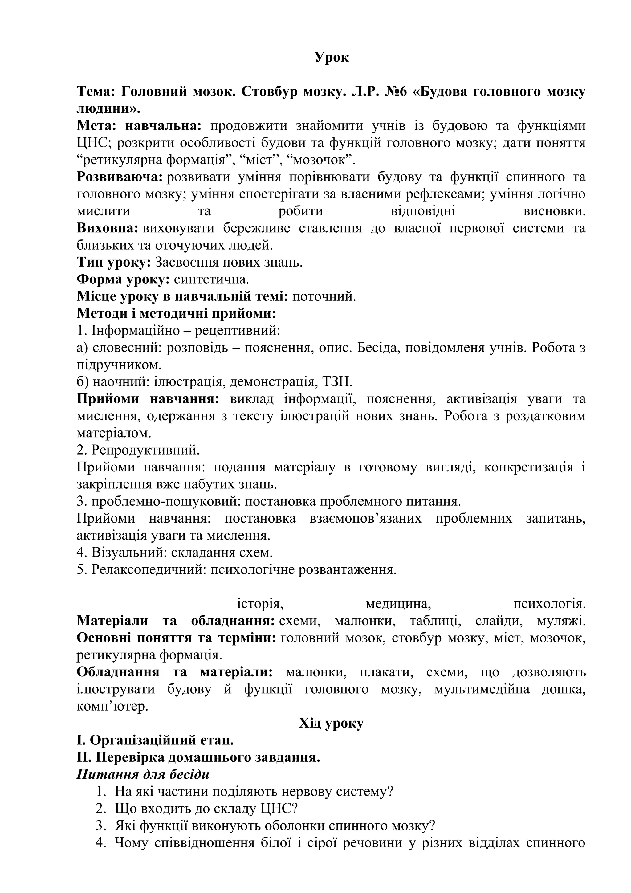 Тема: Головний мозок.Стовбур мозку. Л.Р. №6 «Будова головного мозку