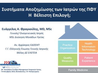 The document discusses the need for reforms in physician compensation systems to improve primary care, highlighting the challenges of current payment methods that often lead to inefficiencies and unsustainable healthcare costs. It emphasizes the importance of aligning incentives with patient outcomes rather than service volume, calling for blended payment methods and value-based care models that prioritize quality and coordination. The text also highlights successful practices from models in other countries, advocating for a patient-centered approach in healthcare delivery.