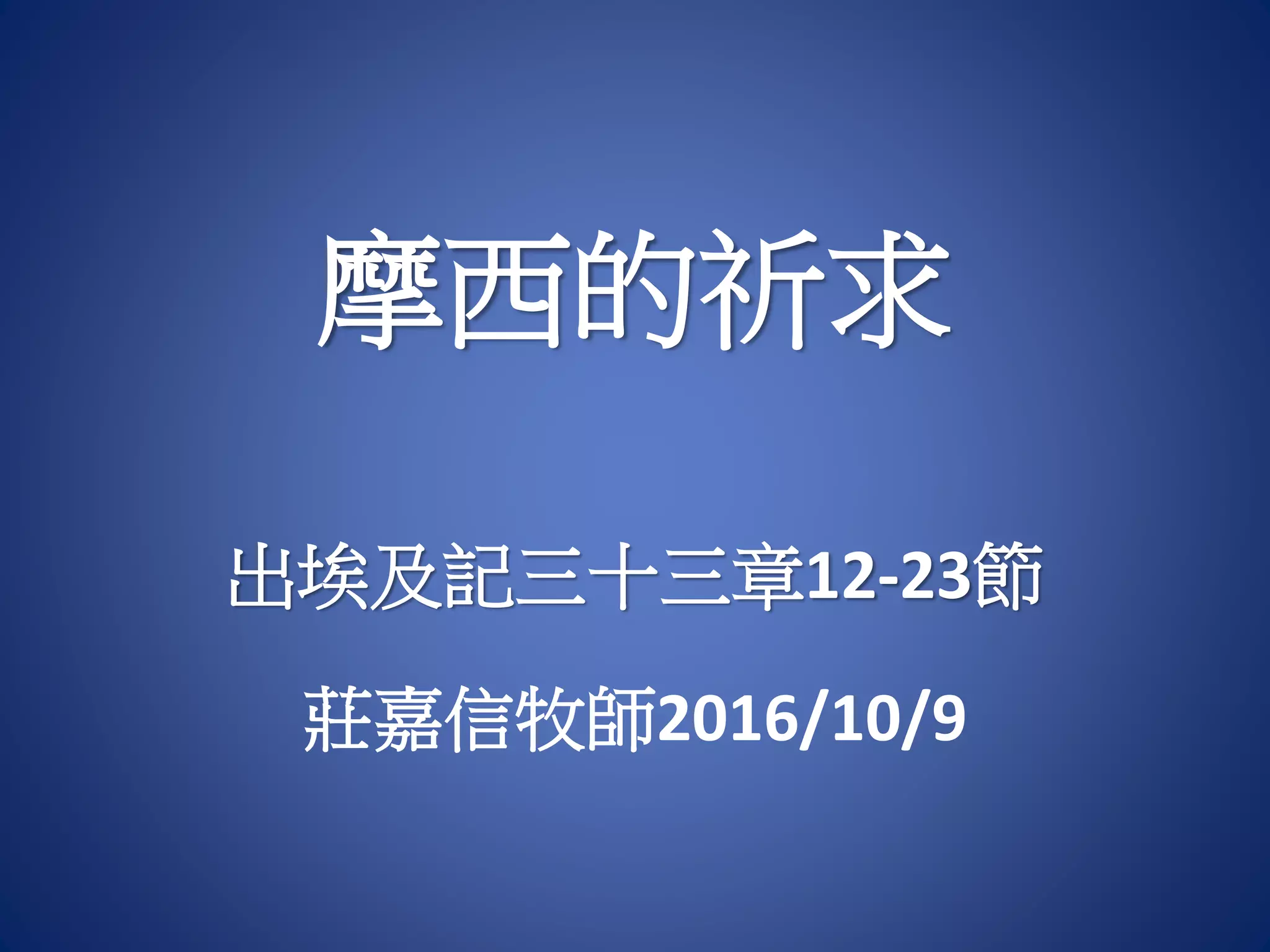 摩西的祈求 出埃及記三十三章12-23節 莊嘉信牧師2016/10/9