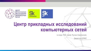 Центр прикладных исследований компьютерных сетей (ЦПИKС) под руководством профессора Руслана Смелянского разрабатывает технологии и продукты для компьютерных сетей нового поколения в России. Проект включает прикладные исследования, создание национального центра компетенции, подготовку кадров и развитие отечественного производства сетевого оборудования, в условиях преобладания иностранной продукции. Основные достижения включают создание первого российского SDN-контроллера и успешные тестирования в крупных телекоммуникационных компаниях.