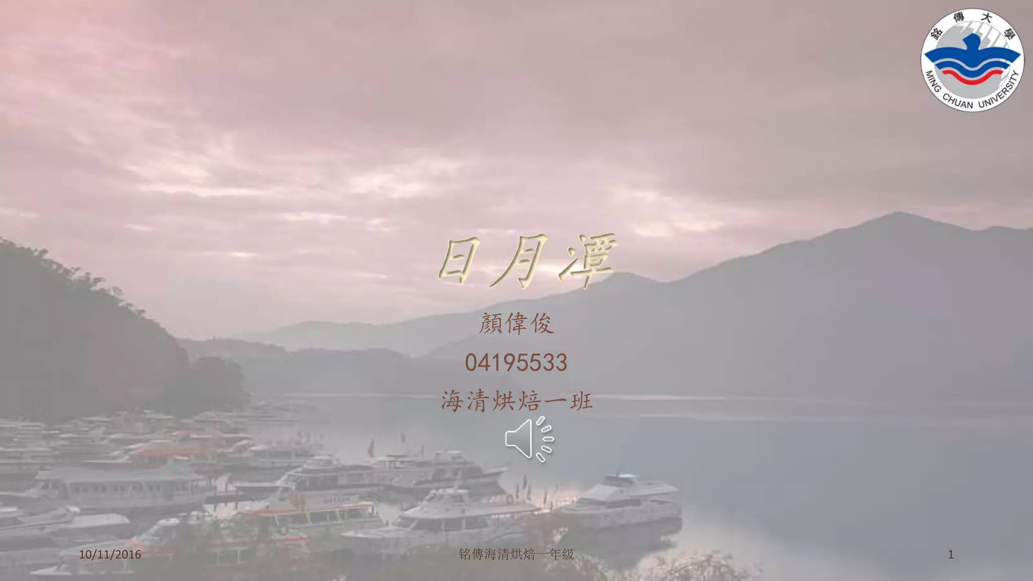 日月潭 顏偉俊 04195533 海清烘焙一班 10/11/2016 铭傳海清烘焙一年级 1