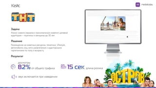Документ описывает стратегию видеорекламы с применением всплывающего окна и плеера, нацеленной на максимальный охват аудитории и повышение глубины просмотров. Описываются методы оптимизации рекламной кампании в реальном времени и использования аудиторных настроек для достижения высоких результатов. Важным аспектом является обратная связь с клиентом и контроль конверсии на протяжении кампании.