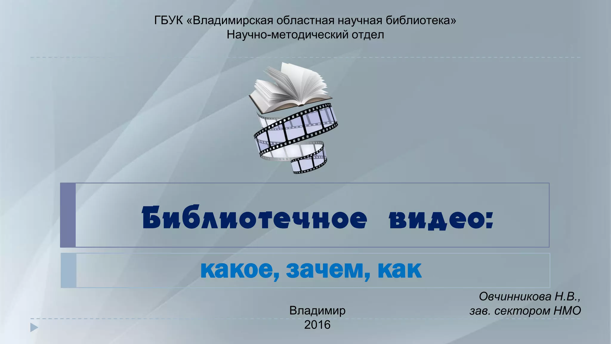 Документ описывает различные типы библиотечного видео и их предназначение, включая анонсы мероприятий, отчеты о прошедших событиях и буктрейлеры. Указываются рекомендации по созданию таких видеороликов, включая их эмоциональную подачу, продолжительность и использование музыки. Основная цель этих видео заключается в привлечении внимания к библиотечным мероприятиям и улучшении имиджа библиотеки.