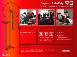 - 佐藤竜之介(@tricknotes) - プログラマ歴: 3年 - 言語:Ruby、JavaScript