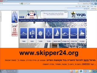מבחן אופנוע ים 1. www.skipper24.org פורטל חינמי לתרגול תיאוריה בכל מקצועות השייט : אופנוע ים , סירה מהירה , עוצמה ב ', ימאות יאכטות , ניווט א ', ניווט ב ', מכונה , מסחרי , עזרה ראשונה , GMDSS ועוד ... 2. 3. בפורטל סקיפר 24 השאלות יוצגו בהתאם לדרישת מינהל הספנות , אופן התרגול מהיר ונוח , המערכת תזהה ותתמקד בשאלות ונושאים בהם את מתקשים . 4.