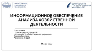 Документ представляет собой информацию об обеспечении анализа хозяйственной деятельности, акцентируя внимание на использовании различных видов экономической, технической и правовой информации. Описываются требования к организации аналитической работы и источникам информации, включая планово-нормативные, учетные и внеучетные данные. Также приводится список рекомендуемой литературы по теме.