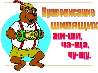Документ содержит обучающий текст, посвященный правилам написания слов с определенными буквосочетаниями, такими как 'жи-ши', 'ща-ча', 'чу-щу'. Приводятся примеры слов и фраз для тренировки правильного написания и произношения. Главное внимание уделяется сочетаниям букв и их правильному использованию в различных словах.