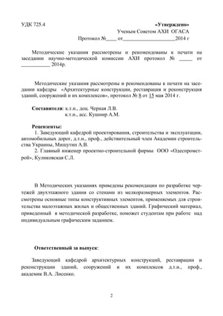 Документ содержит методические указания для разработки расчетно-графической работы по проектированию двухэтажного здания с использованием мелкоразмерных элементов. В нем рассматриваются рекомендации по созданию архитектурно-конструктивных чертежей, включая планы этажей, кровли и фундамента, а также технические аспекты проектирования. Целью материала является углубление теоретических знаний и получение практических навыков у студентов специальности 'промышленное и гражданское строительство'.