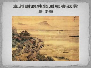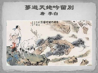 这是一首唐代诗人李白的著名诗作《蜀道难》,诗中描写了蜀道的艰险与壮丽,通过生动的意象表达了对旅行的忧虑和对于家乡的思念。诗中使用了丰富的比喻和夸张手法,展现了蜀道险峻的地形和行旅的困苦。整体上,作品传达了情感与自然的深刻连接,反映了李白的浪漫主义精神。