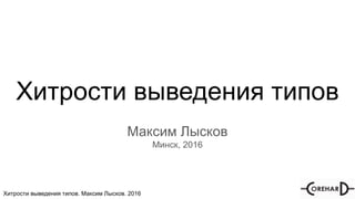 Документ охватывает хитрости мультипоточности и выведения типов в программировании на C++. Автор Максим Лысков делится примерами и практическими советами по использованию конструкций языка, таких как auto и decltype, для улучшения кода и оптимизации работы с типами. Приведены объяснения и примеры кода, демонстрирующие различные аспекты выводимых типов и их применения.
