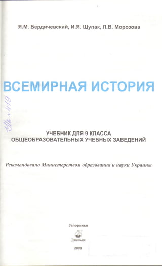 Учебник по всемирной истории для 9 класса охватывает период с XVIII века до конца XIX века, анализируя основные исторические события и процессы, связанные с социально-экономическими и политическими изменениями в Европе и мире. Он включает структурированный материал, иллюстрации, карты и задания для улучшения понимания учащихся. Учебник рекомендован Министерством образования и науки Украины и создан с учетом современного подхода к преподаванию истории.