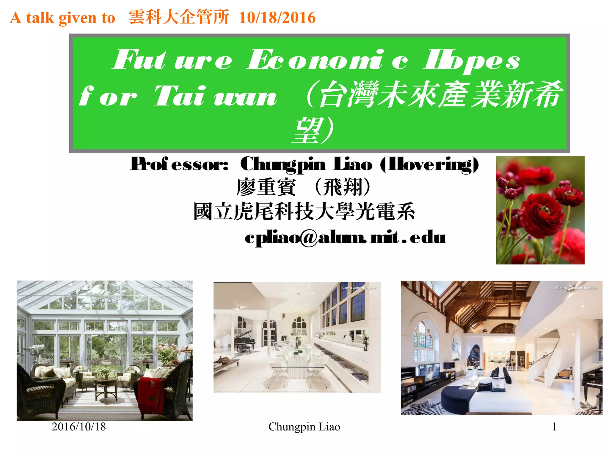 *Corresponding Author: cpliao@alum.mit.edu and Speaker