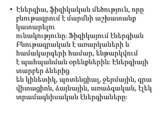 • Էներգիա, ֆիզիկականմեծություն, որը