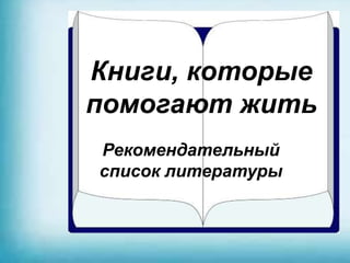 Документ представляет собой рекомендательный список книг, которые помогают развивать волю и характер, а также способствуют личностному росту и счастью. В нём описываются произведения различных авторов, затрагивающие жизненные трудности, дружбу, любовь и преодоление препятствий. Рекомендуются как классические, так и современные книги, которые могут стать источником вдохновения и мудрости для читателей.