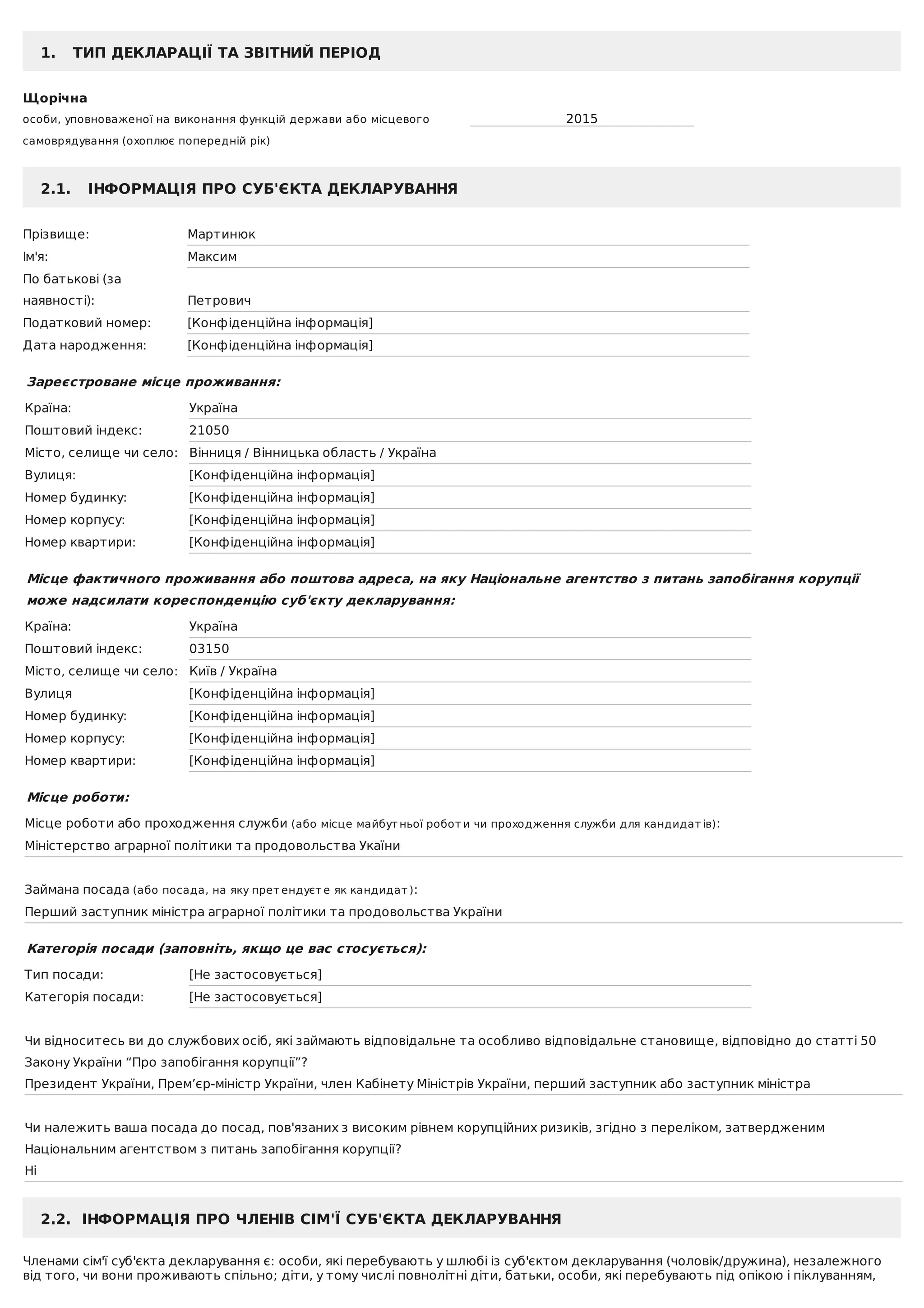 2.1. ІНФОРМАЦІЯ ПРО СУБ'ЄКТА ДЕКЛАРУВАННЯ