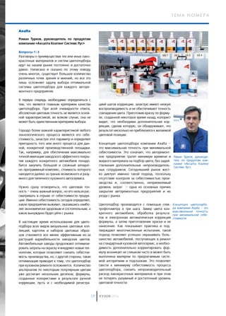 Документ обсуждает текущие проблемы на рынке лакокрасочных материалов (ЛКМ) в России, включая снижение спроса на премиальные бренды и переход клиентов к более дешевым сегментам. Упоминаются усилия компаний по снижению рисков и адаптации к рыночным условиям, включая разработку новых продуктов и акций для клиентов. Приводится информация о различных системах цветоподбора и технологиях, направленных на улучшение качества ремонта и уменьшение затрат.