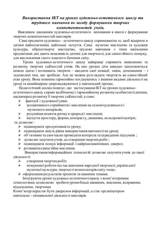 Використання ІКТ науроках художньо-естетичного циклу та
