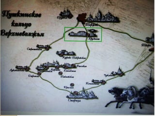 Документ описывает село Грузины с историей более 265 лет, его архитектурные памятники и связь с известными историческими личностями, такими как А.С. Пушкин. В тексте упоминаются каменные дома, парк и мост, а также важные события, связанные с посещением Екатерины II и литературное наследие. Нынешнее состояние дома Полторацких и его значение для местной культуры также подчеркиваются.