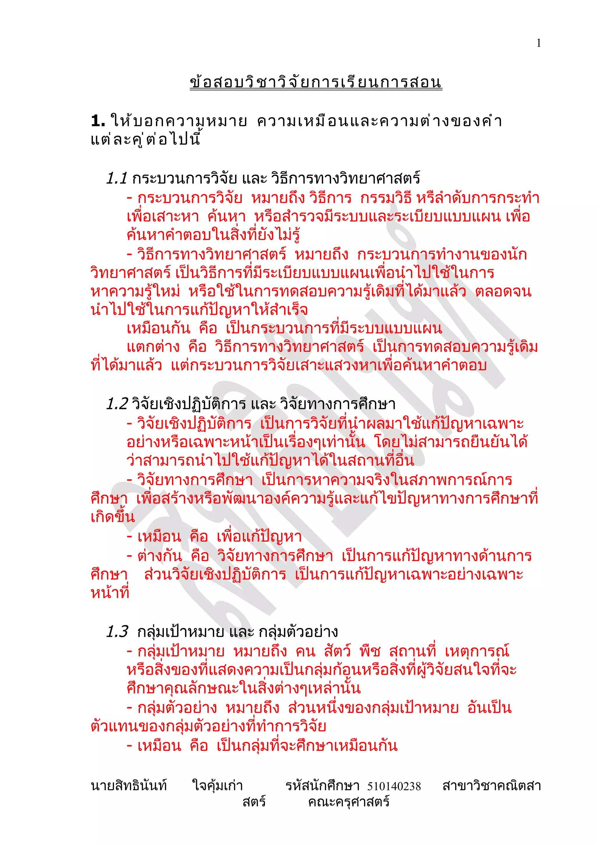 ข้ อ สอบวิ ช าวิ จ ั ย การเรี ย นการสอน