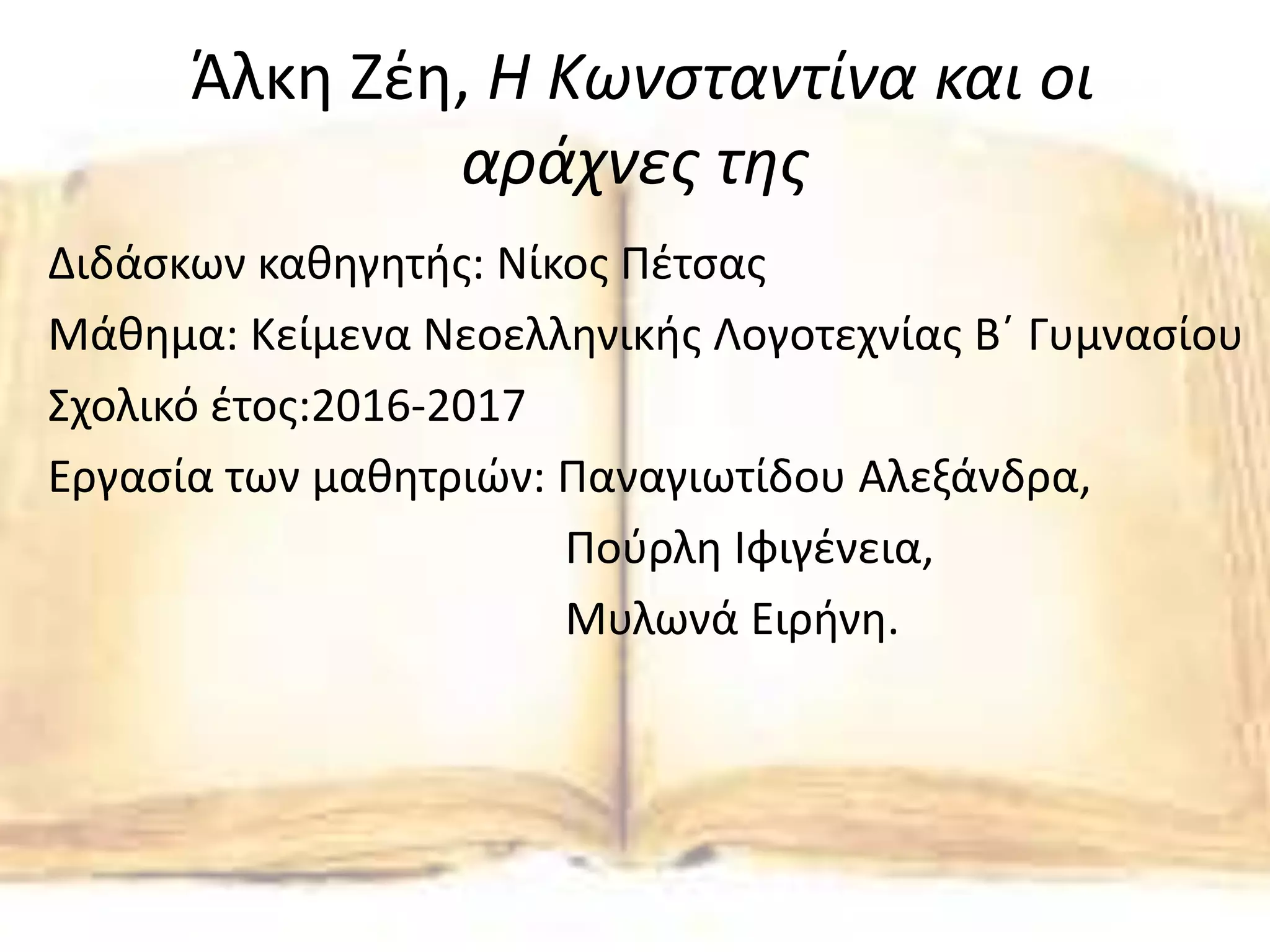 Στοντίτλο του βιβλίου “Η Κωνσταντίνα και οι αράχνες της”, οι