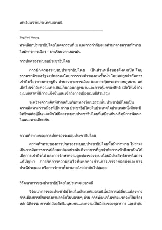 บทเรียนจากประเทศเยอรมนี ------------------------------------------------------------------------------------------- Siegfried Herzog ทางเลือกประชาธิปไตยในศตวรรษที่ 21