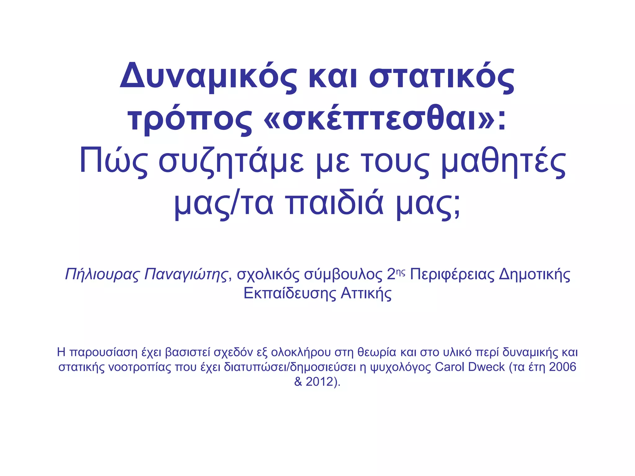 στατικής νοοτροπίας που έχει διατυπώσει/δημοσιεύσει η ψυχολόγος Carol Dweck (τα έτη 2006