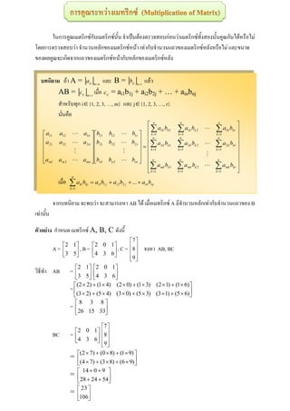 ใบความรู้การคูณระหว่างเมทริกซ์
