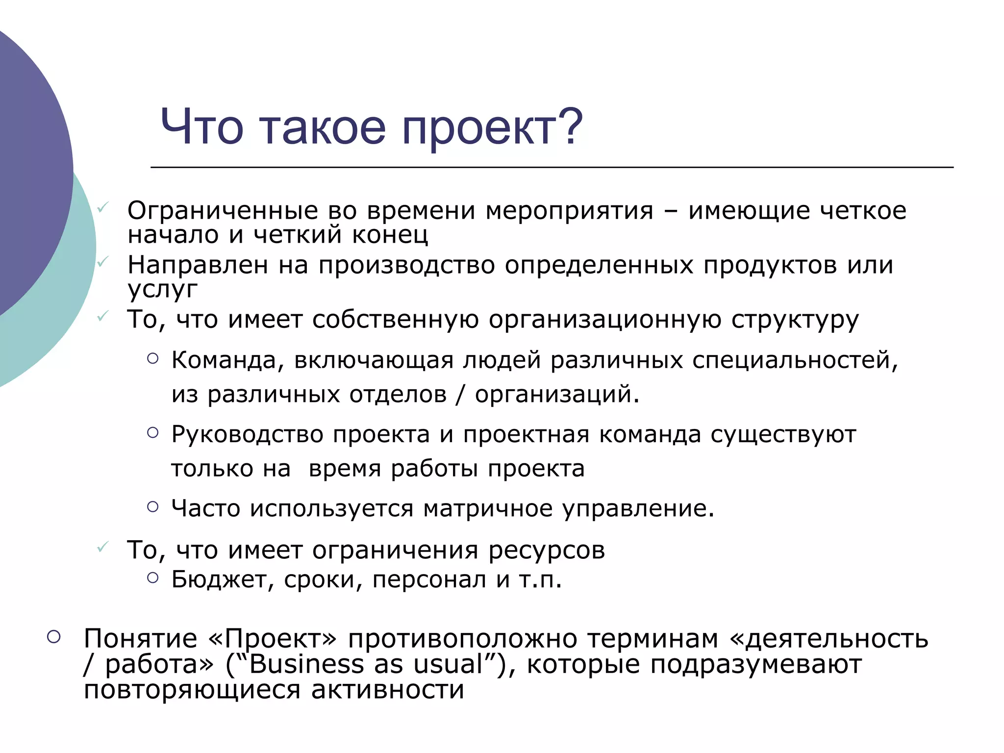 Документ освещает основы управления проектами, подчеркивая его важность для успешного интернет-бизнеса. Основные аспекты включают определение проекта, критические пути, управление рисками и коммуникациями, а также планирование ресурсов и контроль затрат. Завершение проекта требует оценки результатов и определения полученных выгод, что позволяет извлечь уроки для будущих инициатив.