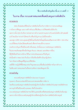 ระบบสารสนเทศเพื่อสนับสนุนการตัดสินใจ DOCX