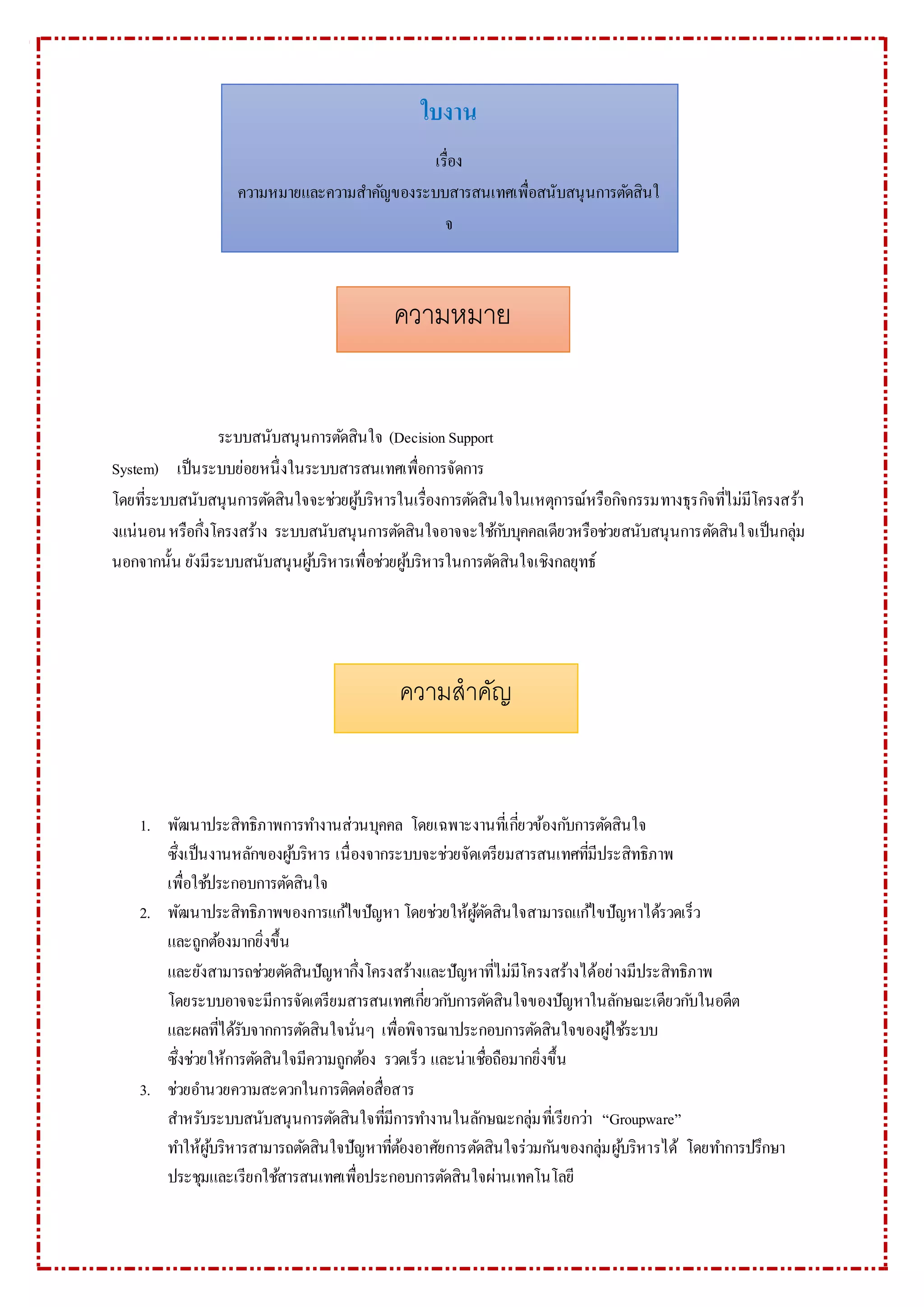 ความหมายและความสำคัญของระบบสารสนเทศเพื่อนสนับสนุนการตัดสินใจ DOCX