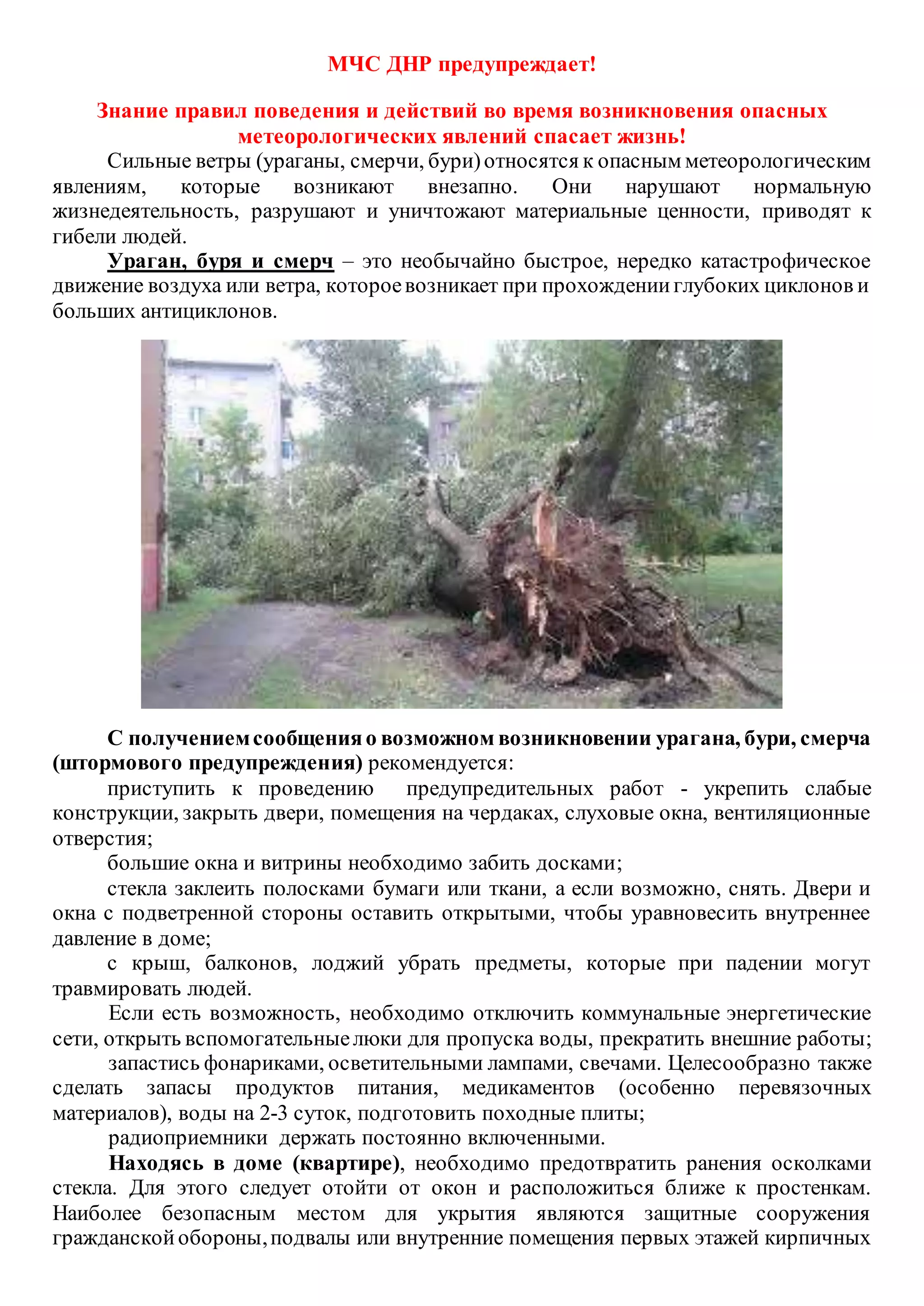 и каменных строений.Нельзя выходить на улицу сразупосле ослабления ветра, потому
