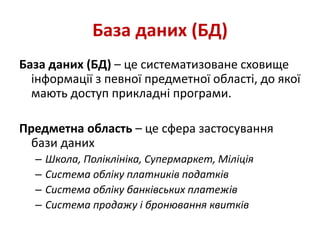 •Кожна БД містить кілька об'єктів та зв'язків між