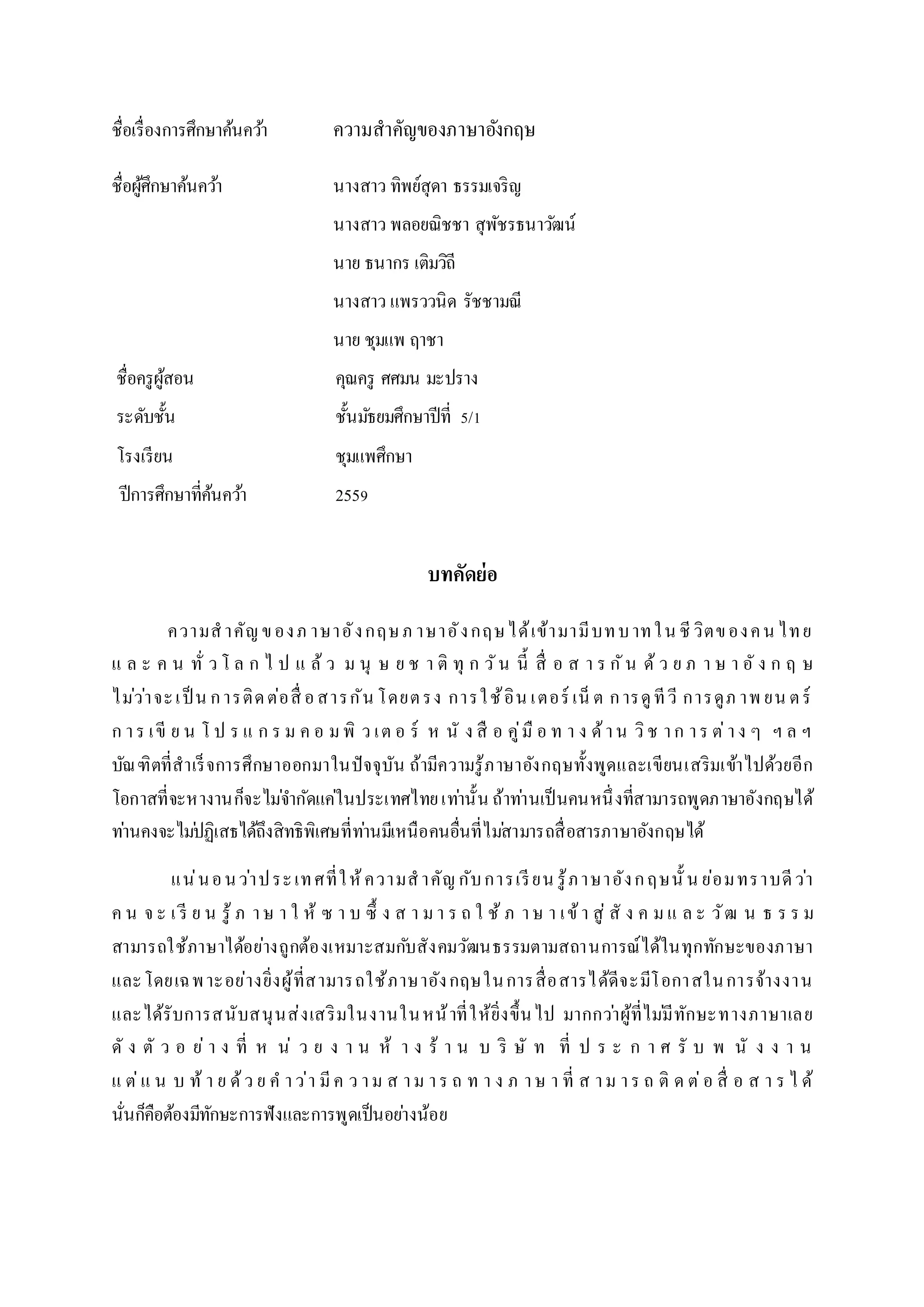 The importance of the English language has to play a role in the lives of Thailand. And the world