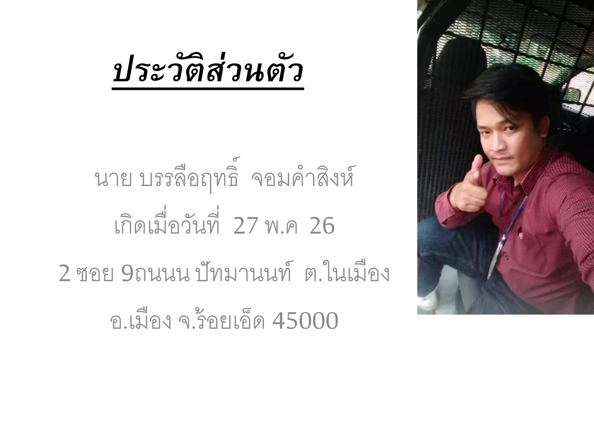 ประวัติส่วนตัว นาย บรรลือฤทธิ์ จอมคาสิงห์ เกิดเมื่อวันที่
