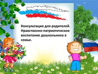 Документ освещает важность нравственно-патриотического воспитания дошкольников в семье, подчеркивая, что воспитание любви к родной культуре и стране начинается с заботы о семье и доме. Он выделяет основные задачи, такие как формирование уважения к труду, любовь к природе и знакомство с традициями России, которые решаются через активное взаимодействие детей с окружающим миром. В документе также указаны практические рекомендации для родителей по внедрению этих идей в повседневную жизнь.