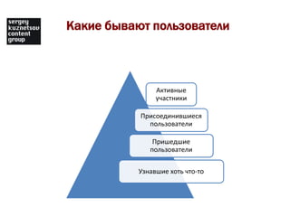 Документ обсуждает важность понимания своей аудитории, включая их желания и предпочтения, с акцентом на сегментацию пользователей. Рассматриваются вопросы о том, как пользователи взаимодействуют с техникой и что ими движет при выборе продуктов. Приведены результаты опроса более 500 человек, а также стратегии по коррекции рекламных кампаний и подхода в социальных медиа.