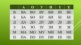 Д ДА ДО ДУ ДИ ДІ ДЕ