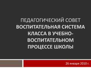 Документ описывает воспитательную систему класса и уровень удовлетворенности учащихся школьной жизнью. Основное внимание уделяется целям и задачам воспитательного процесса, включая формирование творческой и трудолюбивой личности, развитие сплоченности классного коллектива и экологической культуры. Также подчеркивается важность коллективной работы воспитателей и единого подхода в воспитательном процессе.