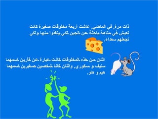 تتناول القصة رحلة أربعة مخلوقات في متاهة بحثاً عن "الجبن" الذي يرمز للأهداف في الحياة. يتعرض مخلوقان للصدمة لفقدان الجبن بينما يتكيف الآخران بسرعة، مما يبرز أهمية تقبل التغيير والتكيف معه بمرونة. تقدم القصة دروسًا حول كيفية مواجهة التغيير، مثل مراقبة التغيرات والتمتع بالتحولات الإيجابية.