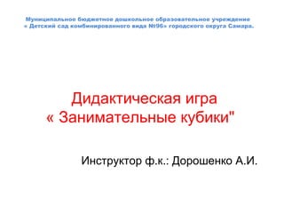 Документ описывает дидактическую игру 'занимательные кубики', предназначенную для детей 5-7 лет, с целью формирования интереса к физической культуре и развития двигательной активности. Игра включает в себя использование кубиков с изображениями схем перестроений, где дети должны строиться согласно броску кубика. В документе также представлены варианты игры и необходимость анализа поведения участников для формирования дружеских отношений.