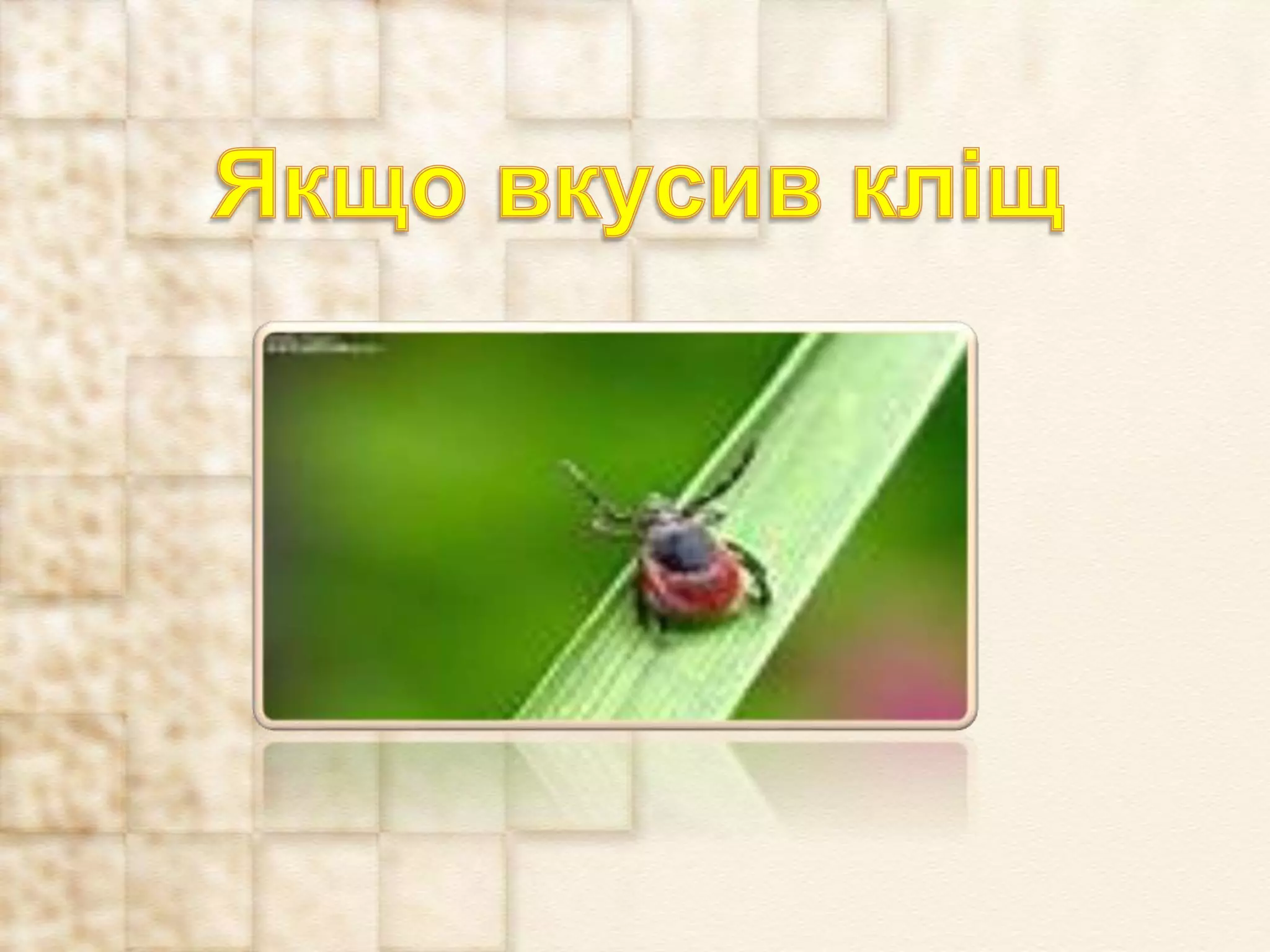 презентація "Укуси кліщів" буде корисною при вивченні паразитичних членистоногих у 6 класі за новою програмою а також на уроках з основ здоров"я та для класних годин