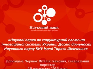 Наукові парки як структурний елемент інноваційної системи України. Досвід діяльності Наукового парку КНУ імені Тараса Шевченка. Чернюк Віталій Іванович