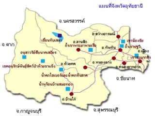 " อุทัยธานีเมืองพระชนกจักรีปลาแรดรสดี ประเพณีเทโวส้มโอบ้านน้ำตกมรดกโลกห้วยขาแข้งแหล่งต้นน้ำสะแกกรัง ตลาดนัดดังโคกระบือ " คำขวัญจังหวัดอุทัยธานี - 18.