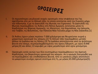 III. Οροσειρές εκτός αυτών των δύο συστημάτων περιλαμβάνουν την Αρκτική