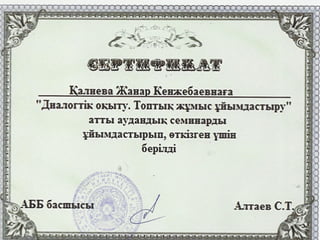 Аты-жөні: Қалиева ЖанарКенжебайқызы