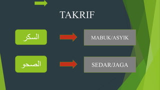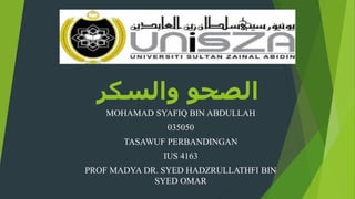 Ringkasan dokumen tersebut memberikan penjelasan tentang konsep al-sukr (mabuk/asyik) dan al-sahw (sedar/jaga) dalam tasawuf. Ada yang memilih al-sukr karena hilangnya sifat-sifat manusiawi, tetapi ada juga yang lebih memilih al-sahw agar tetap sedar dan tidak terjerumus kecacatan. Pendapat yang paling tepat menurut ulama sufiah adalah bahawa al-sahw lebih baik