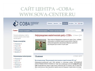 Доклад Центра «Сова» на общероссийском гражданском форуме обсуждает применение антиэкстремистского законодательства в интернете в России. В документе приведены статистические данные о судебных приговорах за высказывания в интернете, а также случаи преследования за пропаганду нацистской символики и массовое распространение экстремистских материалов. Обсуждаются меры по фильтрации контента и блокировке доступа к сайтам, содержащим экстремистский контент.