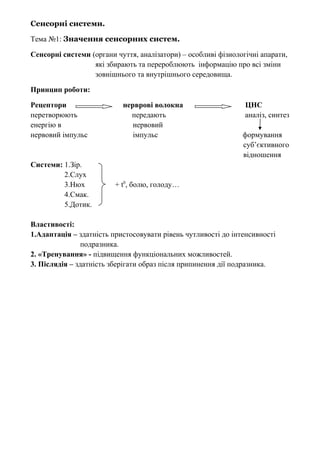 Сенсорні системи (органи чуття, аналізатори) – особливі фізиологічні апарати,