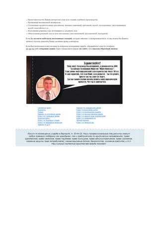 Документ содержит информацию о различных аспектах возмещения ущерба и вреда в Барнауле, включая компенсацию морального и материального ущерба, возмещение вреда, причиненного здоровью, и юридические услуги в данной области. Рассматриваются различные сценарии, такие как ДТП, некачественное оказание услуг и помощь юристов в процессе возмещения ущерба. Также упоминаются исковые заявления и страховые случаи, связанные с возмещением вреда.